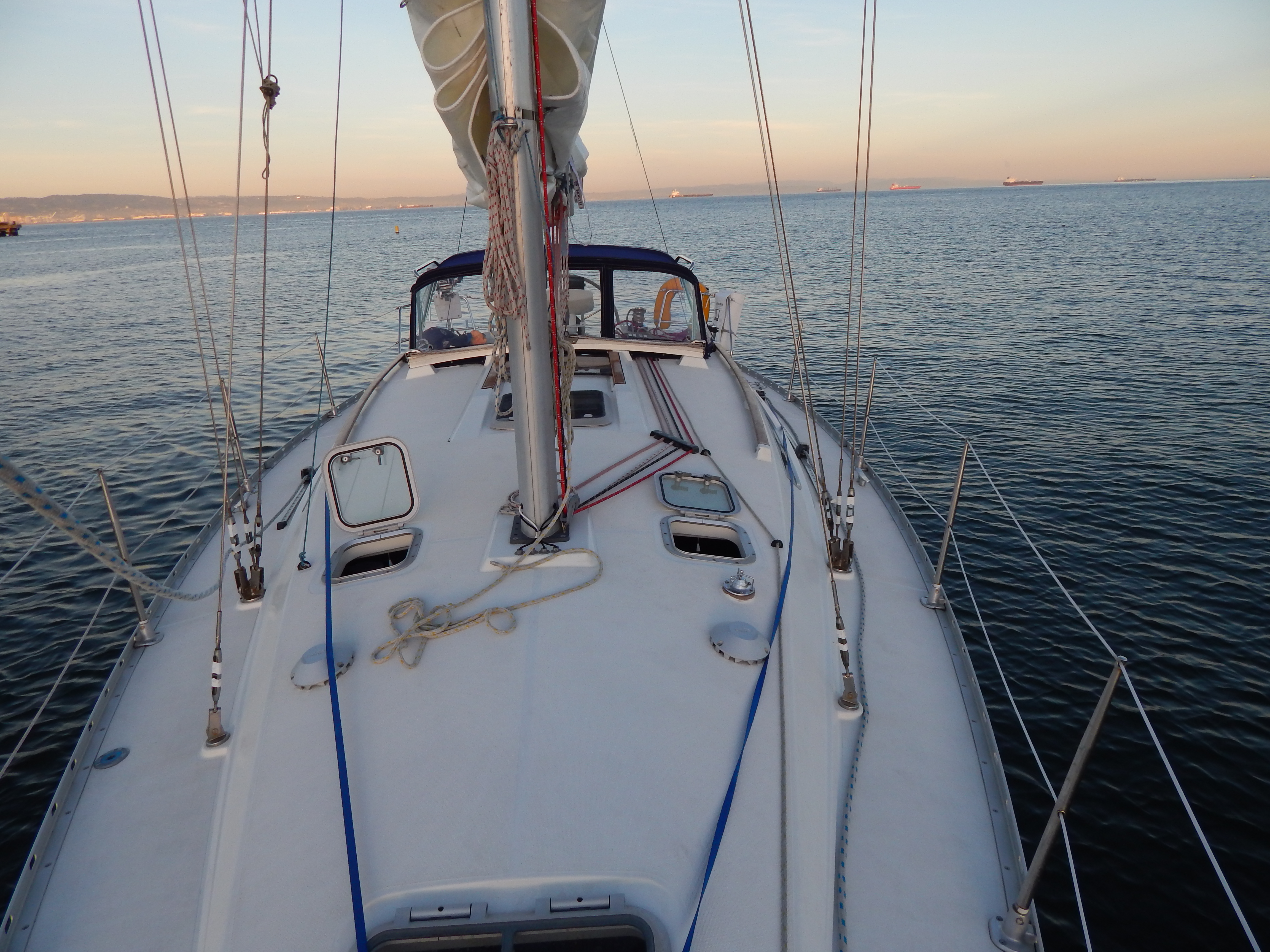 After coffee and mush we hoisted sails and tacked out of the channel beyond C&H Sugar on the Crocket side of the Carquinez Strait. For a spell we had enough breeze to keep the boat moving. By 10:00 AM the wind dropped then vanished altogether only the ebbing tide kept us headed to home port.